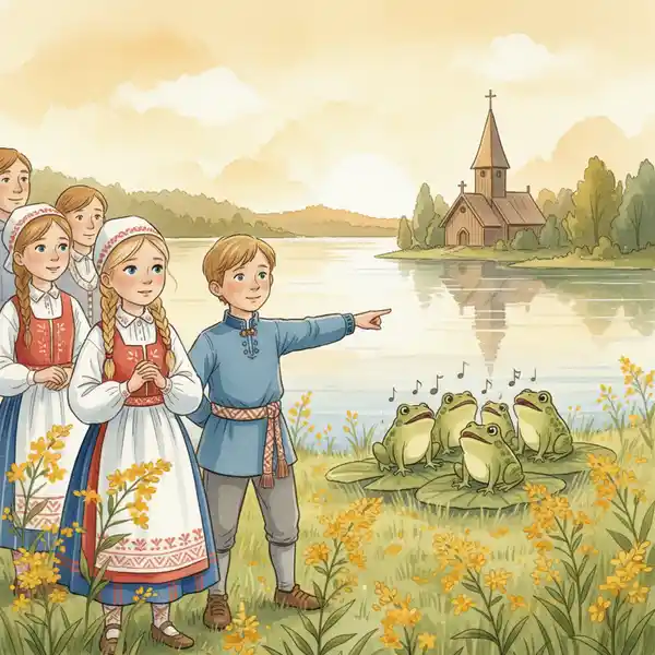 Lilja tutki kirjettä tarkemmin. "Katsotaan näitä vihjeitä. 'Kirkon torni osoittaa tietä' – se tarkoittaa varmasti meidän vanhan kirkon tornia. 'Sammakot laulavat illalla' – siellä täytyy olla joku järvi tai lampi lähellä. Ja 'kultaiset kukat kukkivat kesäkuussa' – voisiko se olla voikukkaniittyjä?"