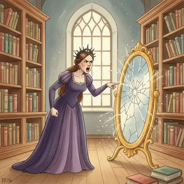 Eräänä päivänä liikkeeseen tuli kaunis mutta ylimielinen nainen. Hän katsoi peiliin ja säikähti - peili näytti ruman, katkeran naisen.